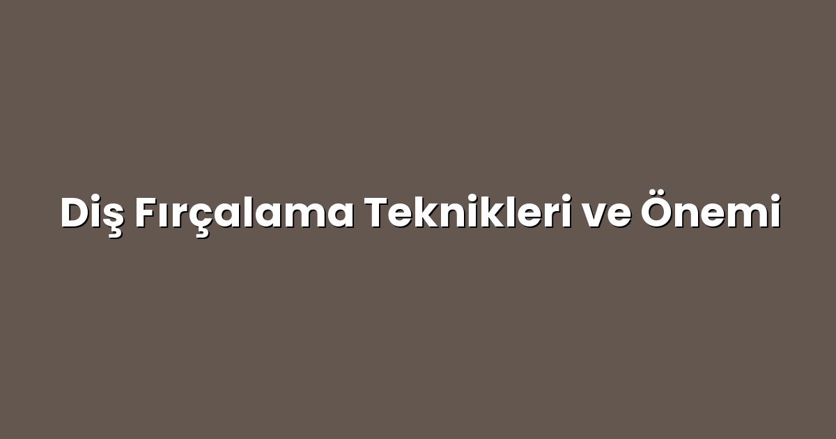 Diş Fırçalama Teknikleri